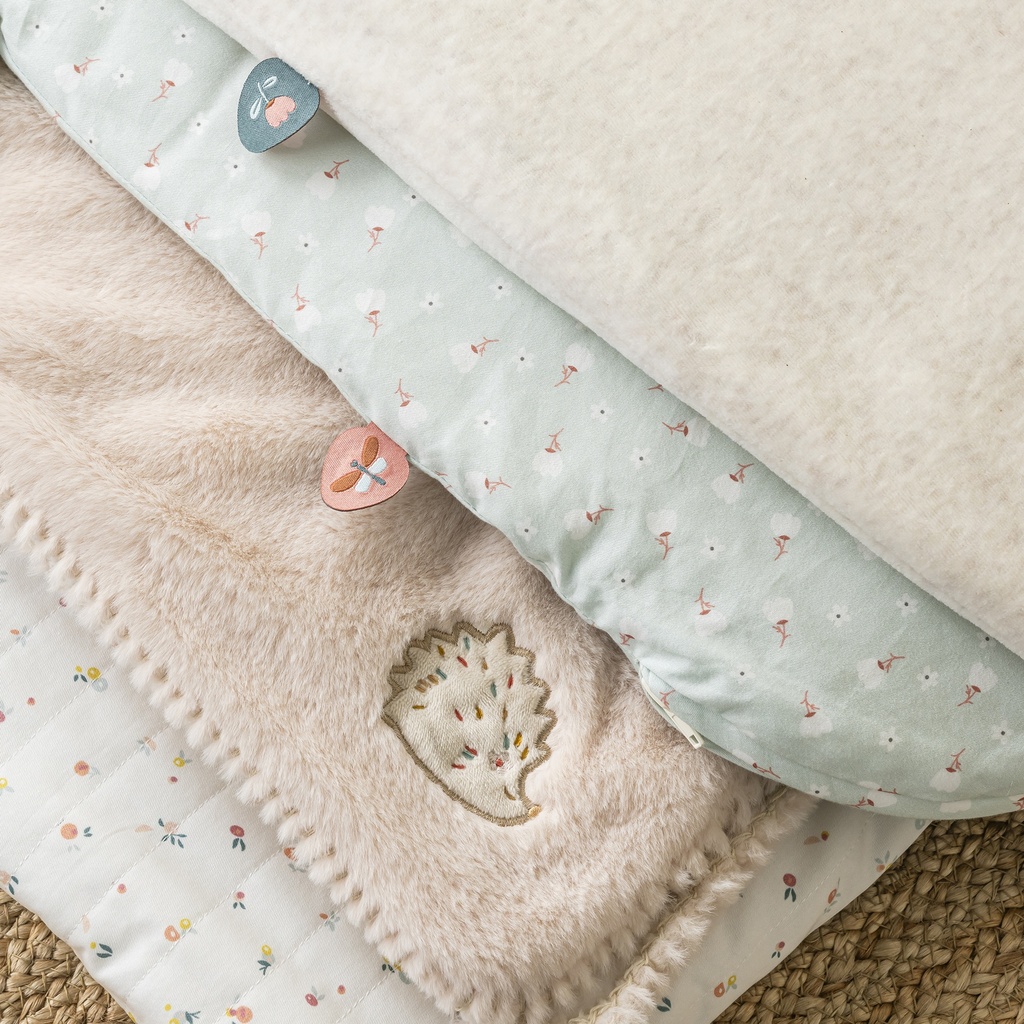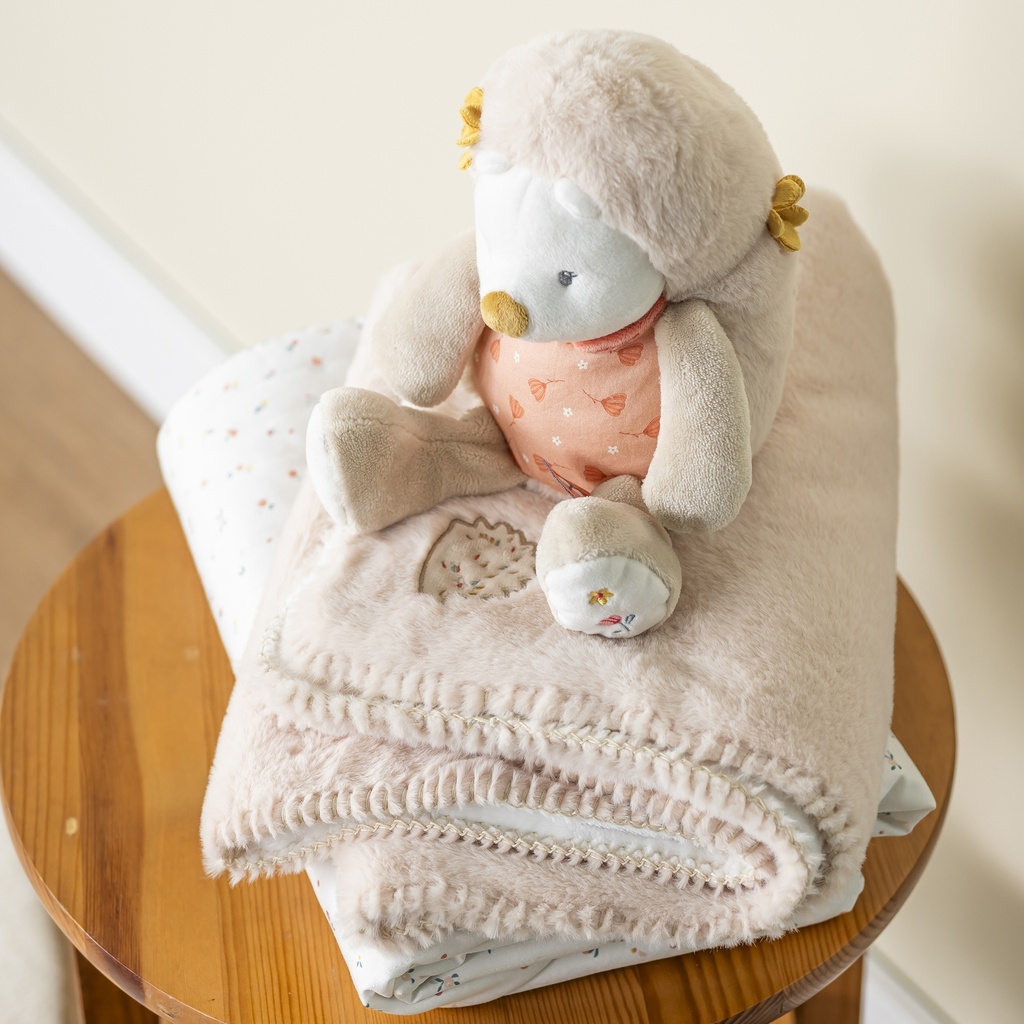 DEKEN, 75x100cm,Mila,Lana,Zoe-ZOE egel light beige, uni/brod. Egel, aop bloem super soft, voor wieg/draagmand/park
