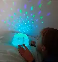 De projectorlamp projecteert de mooiste sterren op het plafond van je baby- en kinderkamer: een magische en ontspannende manier om in slaap te vallen! Met de schakelaar wissel je gemakkelijk tussen verschillende kleuren sterren: regenboogkleurtjes, oranje, groen of blauw. Door de handige timer schakelt de projector lamp automatisch na 30 minuten uit. Zo kan jouw kleintje in slaap vallen onder een lovely sterrenhemel!
