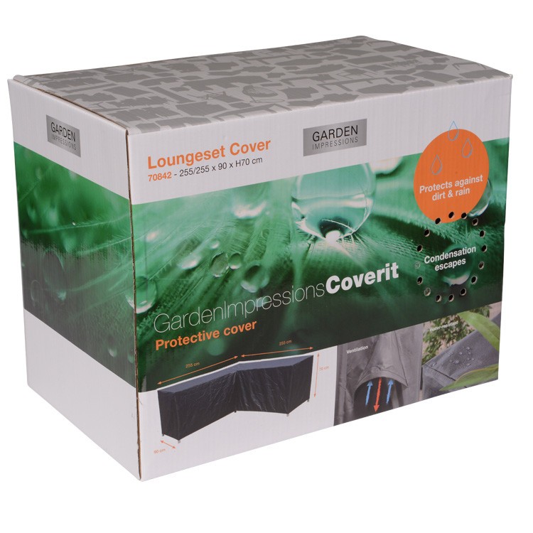 Garden Imp. | Afdekhoes, Coverit, L-vormige Loungeset, 255/255x90xH70cm, Grijs, Polyester, Waterafstotend, Elastieken Hoeken