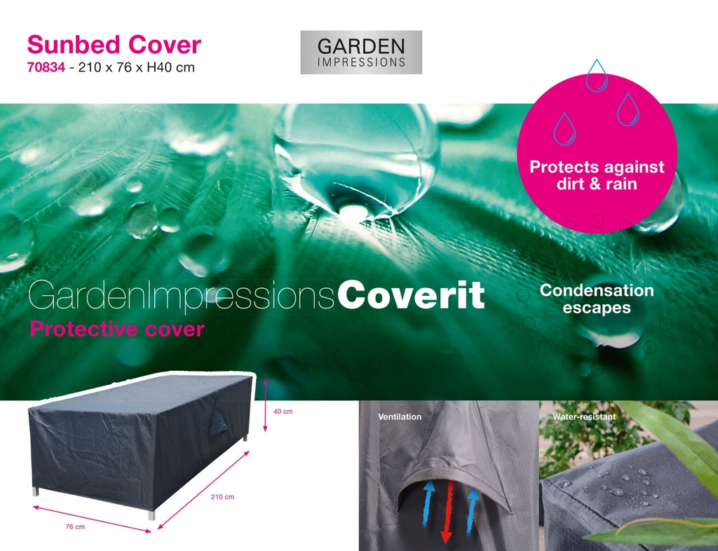 Garden Imp. | Afdekhoes, Coverit, Voor Ligbed, 210 x 76 x 40 cm, Grijs, Uni, Polyester/PA, Waterafstotend, Elastieken Hoeken
