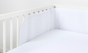 Een bedomrander voorkomt dat je kleintje het hoofdje stoot tegen de spijlen van het bed. Toch worden bedomranders ook wel eens als een gevaar beschouwd doordat het kindje met de mond of neus er tegen zou kunnen komen liggen. Aerosleep heeft de veiligheid van het stootkussen gecombineerd met de luchtdoorlatendheid van de Aerosleep honinggraad.