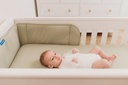 Een bedomrander voorkomt dat je kleintje het hoofdje stoot tegen de spijlen van het bed. Toch worden bedomranders ook wel eens als een gevaar beschouwd doordat het kindje met de mond of neus er tegen zou kunnen komen liggen. Aerosleep heeft de veiligheid van het stootkussen gecombineerd met de luchtdoorlatendheid van de Aerosleep honinggraad.