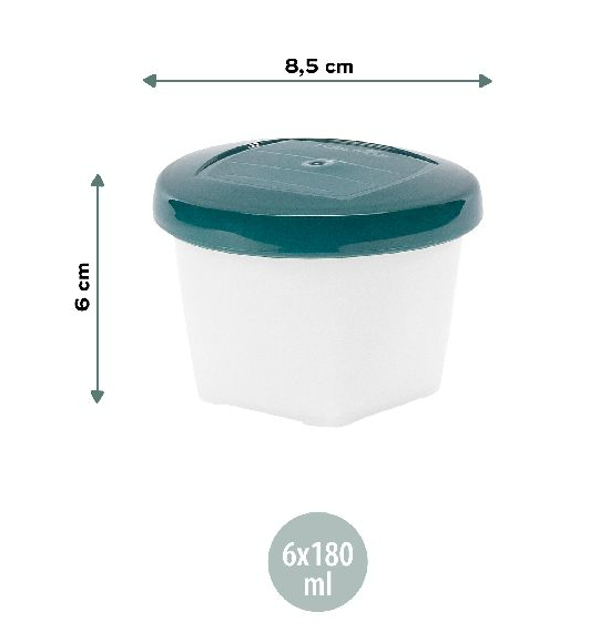 Gezonde en natuurlijke potjes, perfect voor het bewaren van babymaaltijden! Potten gemaakt van meer dan 94% biosourced materiaal uit suikerriet om de migratie van chemische deeltjes in babyvoeding te voorkomen! Gemaakt in Frankrijk Gegradueerde potten en herschrijfbare oppervlakken om het recept en de bereidingsdatum te noteren Magnetron, bain-marie en flessenwarmer veilig Vaatwasserbestendig Hermetische schroefdeksels Bewaren in koelkast & vriezer
