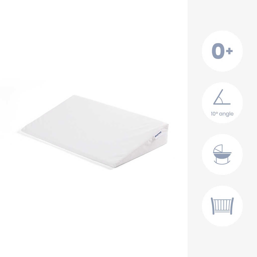 Hellend vlak Wat als... doomoo ervoor zou zorgen dat het bovenlichaam van je baby'tje wat hoger ligt zodat het nog beter kan slapen? De Rest Easy is een hellend vlak met een hoek van 10°, dat je baby'tje helpt om makkelijker te ademen en voor een betere spijsvertering zorgt terwijl je kleintje slaapt. Kinderartsen raden de Rest Easy in het bijzonder aan wanneer je kindje verkouden is, een luchtwegeninfectie of oorontsteking heeft of wanneer het last heeft van reflux of een moeilijke spijsvertering. Leg je baby op het hellend vlak en laat de zwaartekracht zijn werk doen.
