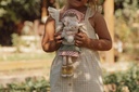 Rosa kan niet wachten om je haar boerderij te laten zien! Ze houdt haar schattige schaapje stevig vast en is superleuk gekleed in haar vrolijke outfit.