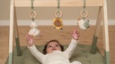 Nieuwsgierige baby’s hebben de tijd van hun leven met deze houten babygym. Boven hun hoofd wachten drie gezellige speelvriendjes: een vrolijk schaapje, een lief kipje en een kleurrijke bloem. Ze wiebelen vrolijk heen en weer en nodigen je kleintje uit om te grijpen, te voelen en te ontdekken.