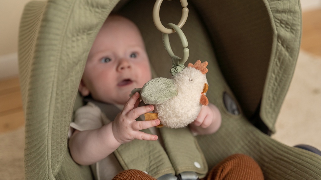 Trek aan dit schattige kipje en zie hoe ze vrolijk begint te trillen! Met haar speelse texturen is ze heerlijk om te voelen en vast te pakken voor kleine handjes.