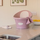 Zacht spoelen – De zachte, gebogen rand rust zachtjes tegen het voorhoofd van de baby, waardoor er geen water in de ogen en oren komt.