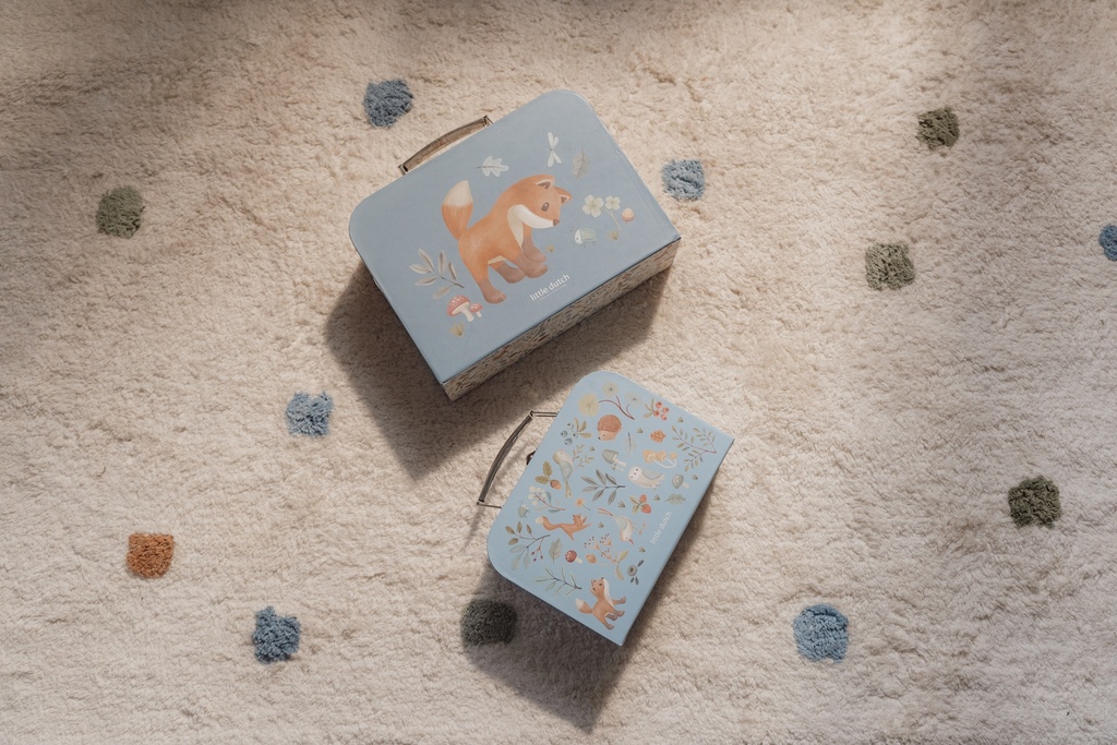Met de klassieke metalen greep en het slotje zijn deze koffers perfect voor kleine ontdekkingsreizigers die al hun schatten mee willen nemen. Pak je koffers en laat het avontuur in het bos beginnen!