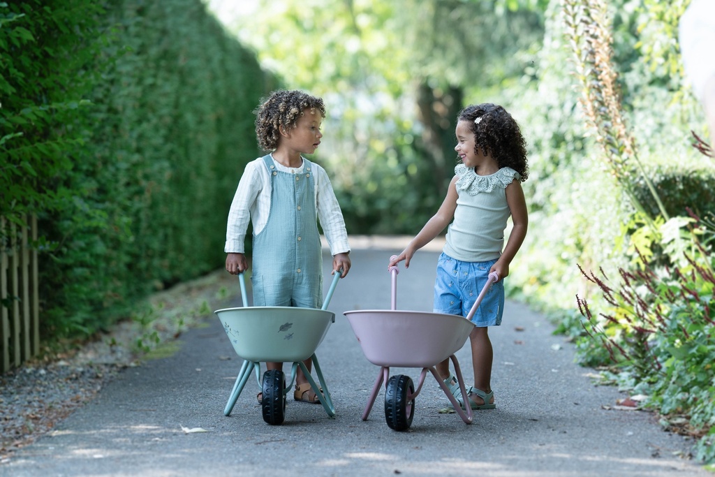 Met deze vrolijke Forest Friends kruiwagen wordt tuinieren nóg leuker! Vul de stevige metalen bak met zand, aarde, plantjes of je favoriete buitenspeelgoed en rijden maar! Dankzij het plastic wiel en de comfortabele handvatten is hij supermakkelijk te duwen, zelfs voor kleine tuiniers in actie.